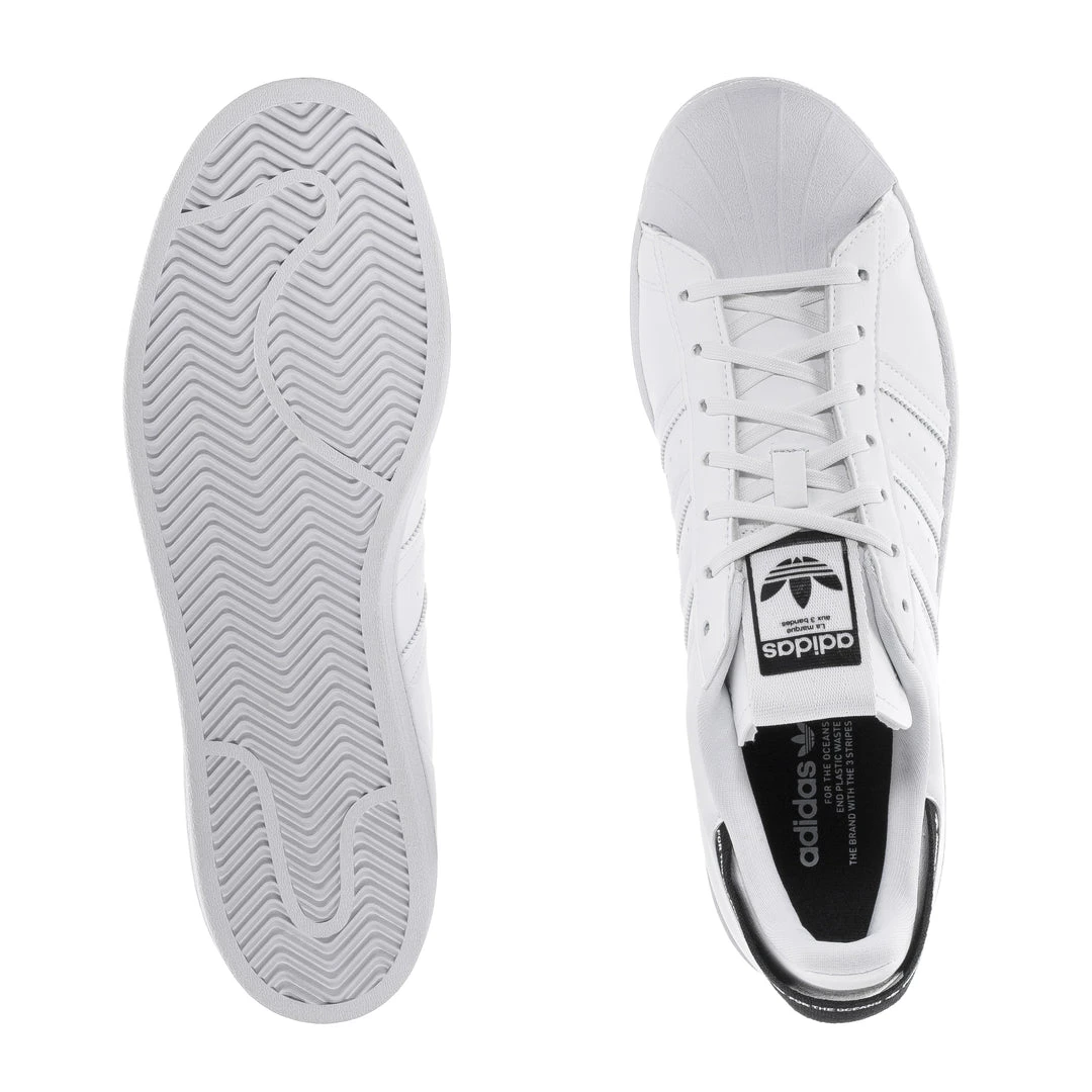 Since its ’70s debut, the adidas Superstar sneaker has been on a constant journey of change. It hopped off the hardwood to make a name for itself in the music scene and then spread to become a style icon around the world. Now it’s evolving to help end plastic waste. For this version of the iconic shoes, the traditional upper is swapped for a synthetic one, and the heel strap and tongue webbing are made with ocean plastic collected from the beach.