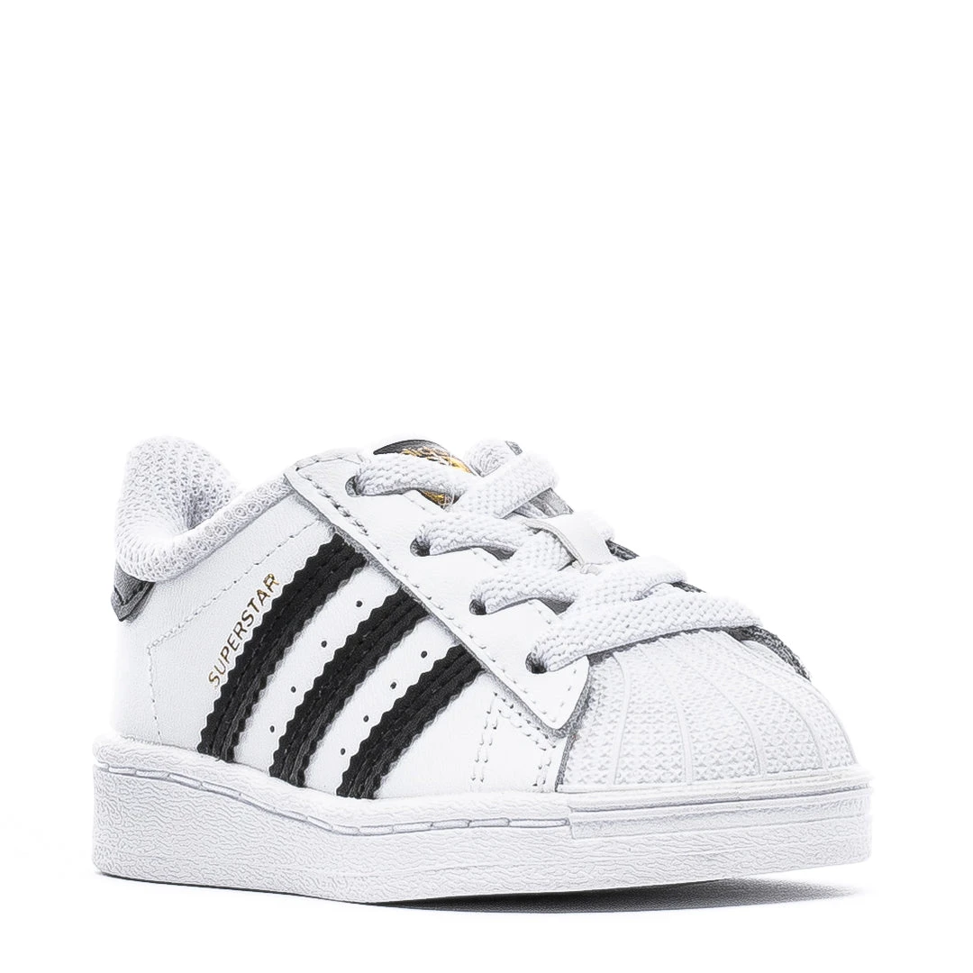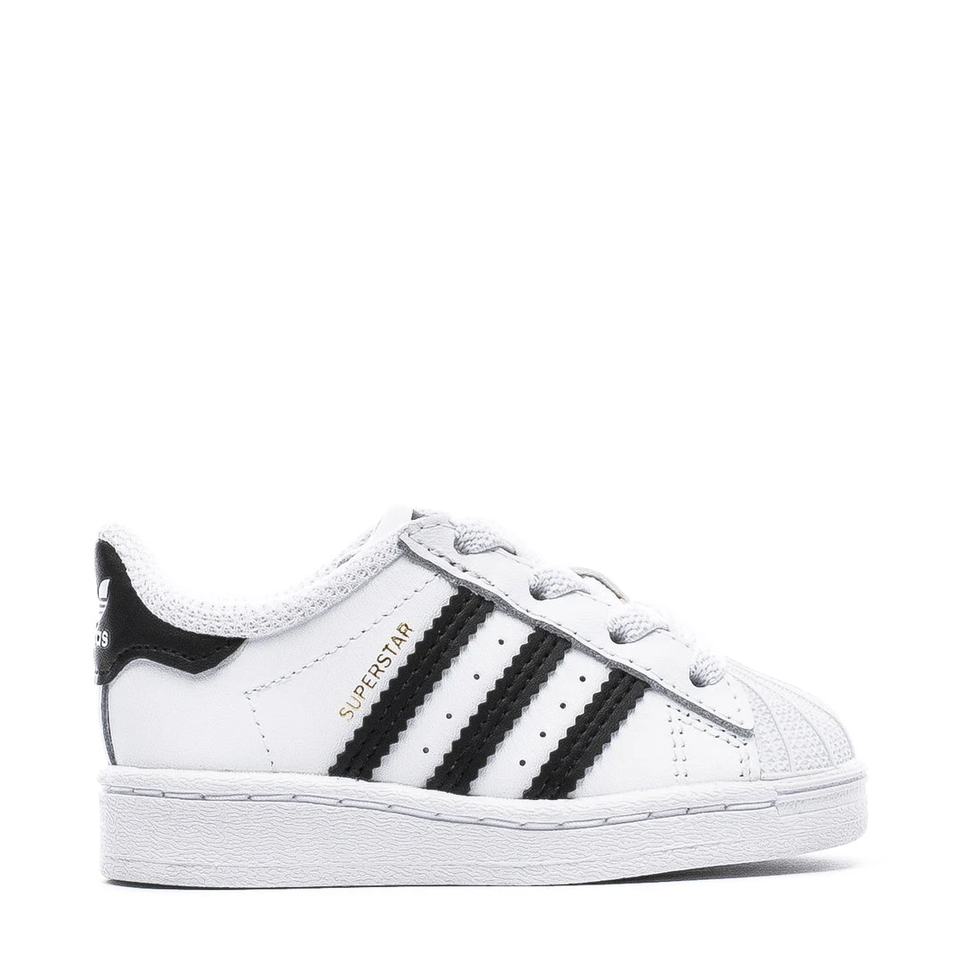 The adidas Superstar Toddler sneakers feature the famous shell-toe design, iconic three stripes, supreme cushioning, and a full-grain leather upper. For your convenience, this Toddler shoe comes with elastic and regular laces for every kind of babe.