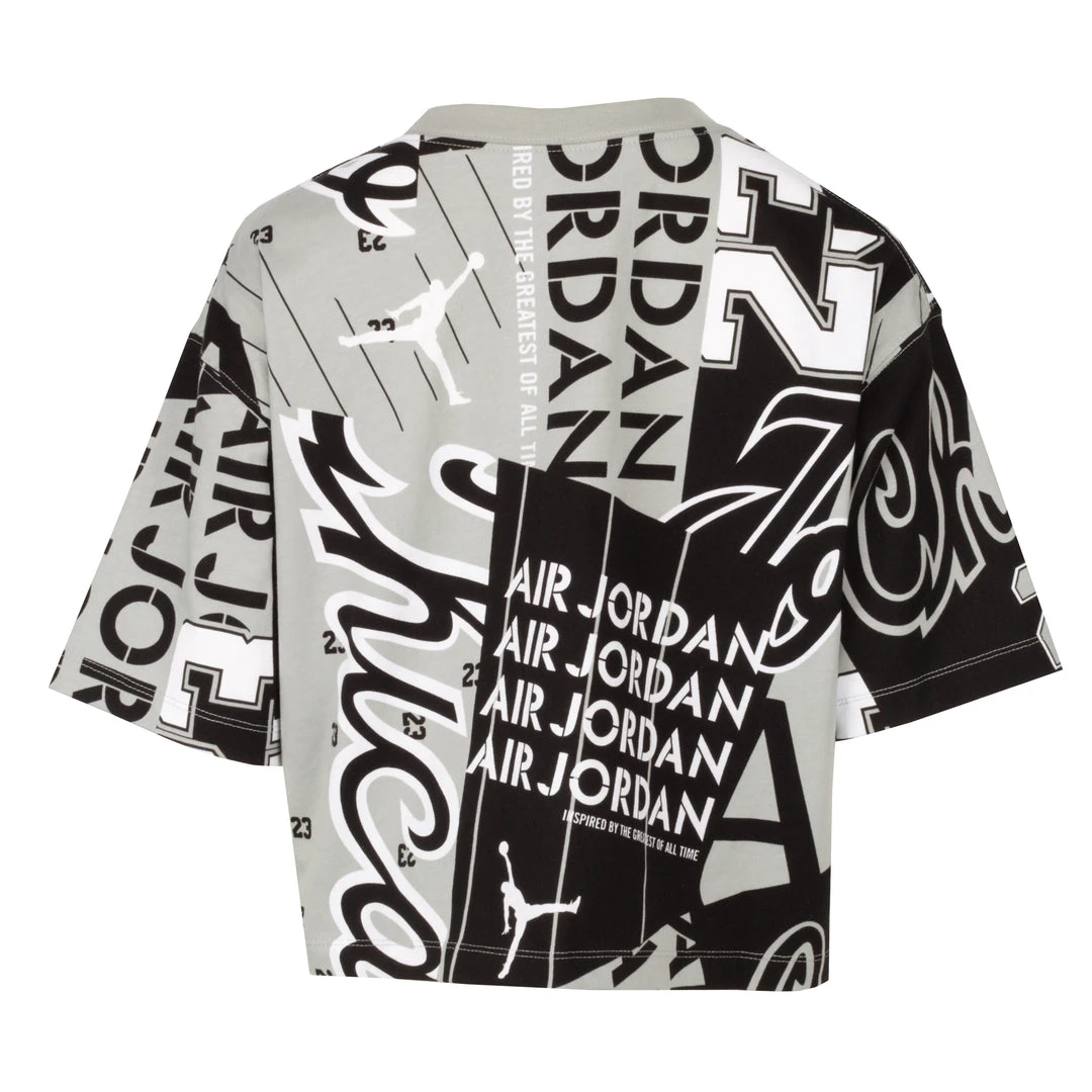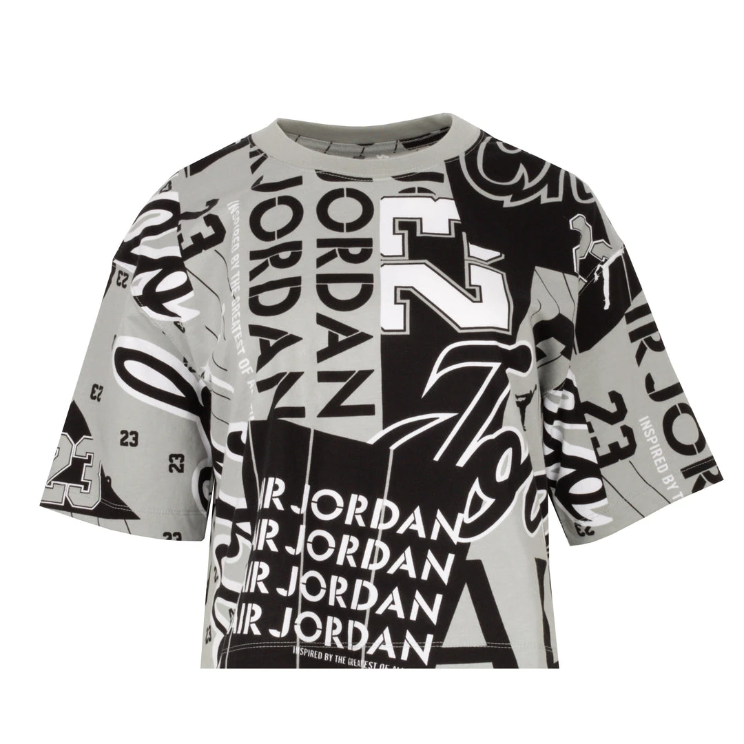 Play up your Jordan Retros with the Jordan Heritage AOP women’s tee. With graphics inspired by MJ’s pro uniforms, this tee celebrates the legacy of the Jordan Brand.