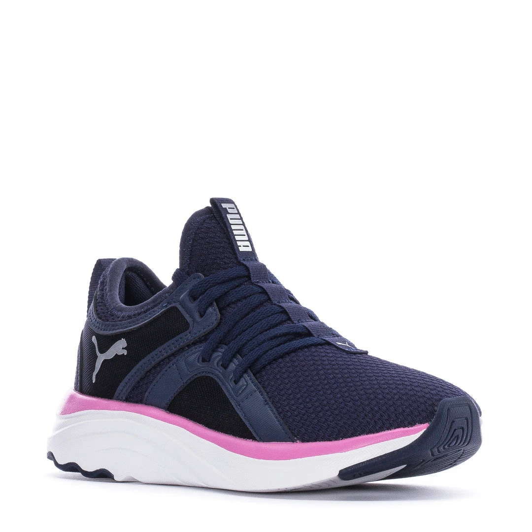 Soft sneakers with a sporty edge. The PUMA SoftRide Sophia comes with SoftRide foam and SoftFoam+ to keep you comfy while you make a statement. These style-forward sneakers have a boot-shaped upper for easy on and off and a customizable, painted topline for your own, personal touch.