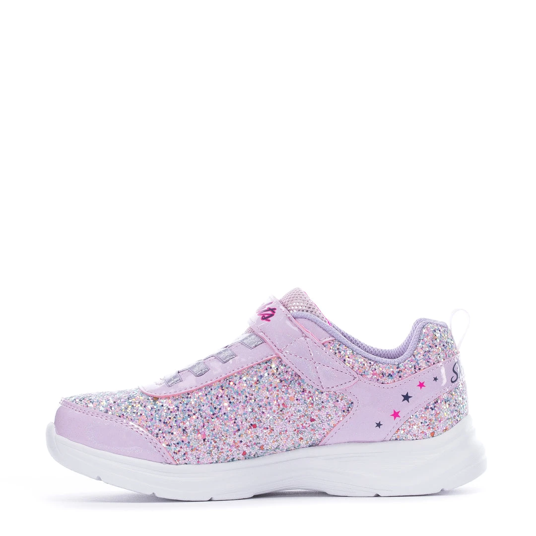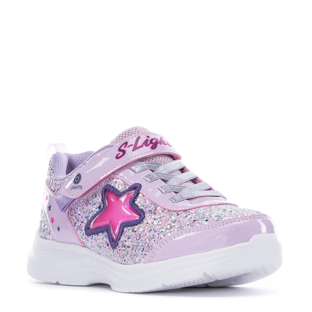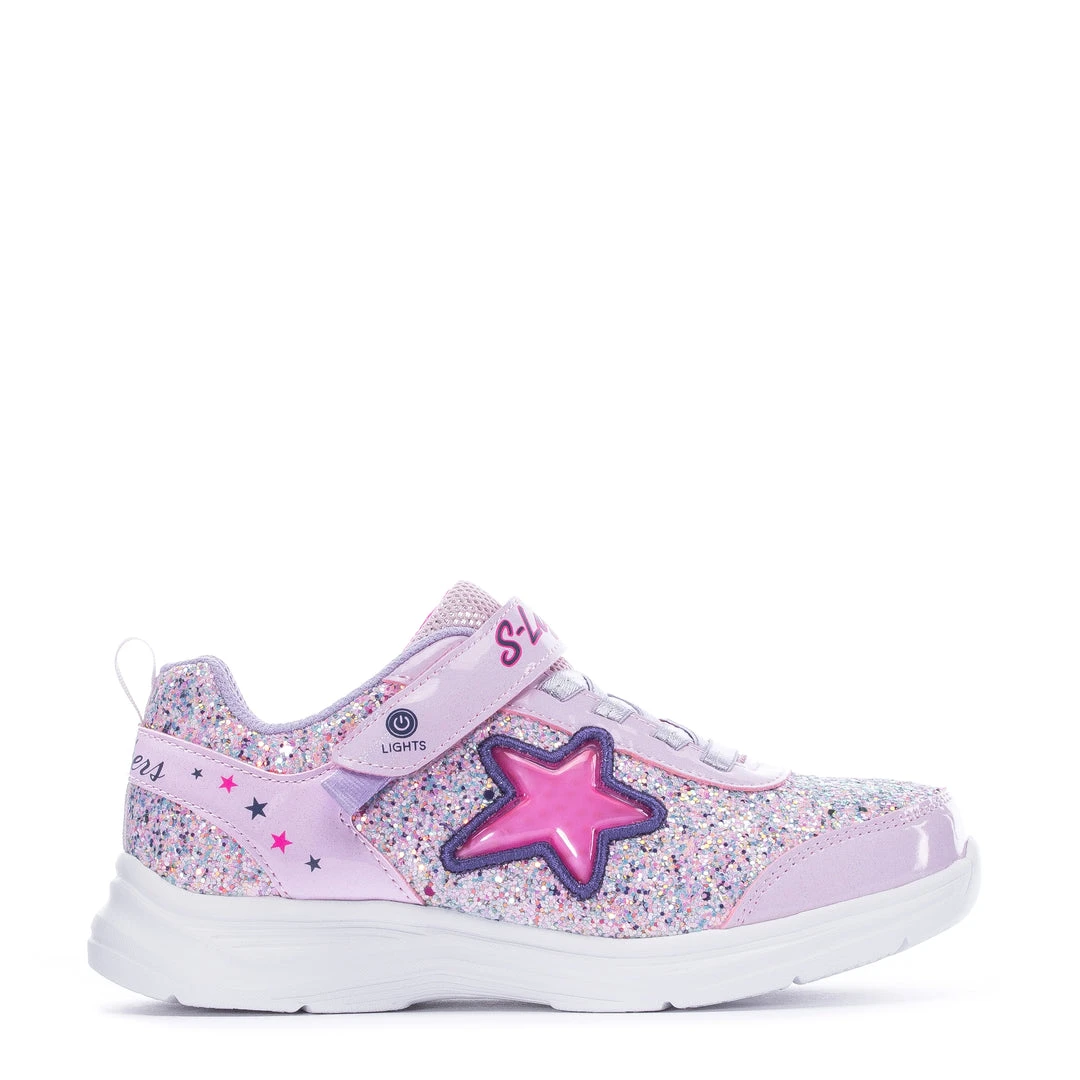 Light up her life and watch her smile glow in the Skechers S Lights: Glimmer Kicks – Starlet Shine light-up sneakers. The colorful lights blink and blend in with the glitter rhinestone upper, while the stretch shimmer bungee laces add a chic touch. Every day will be a great day while she wears her Glimmer Kicks.
