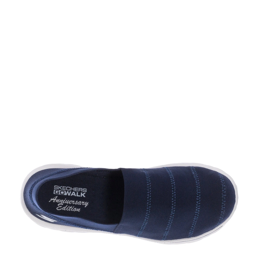 Celebrate in comfort wearing Skechers GO WALK® Classic – Gracious Joy. This anniversary edition slip-on features a stretch gore upper with a Skechers Goga Mat® technology insole and responsive ULTRA GO® cushioning.
