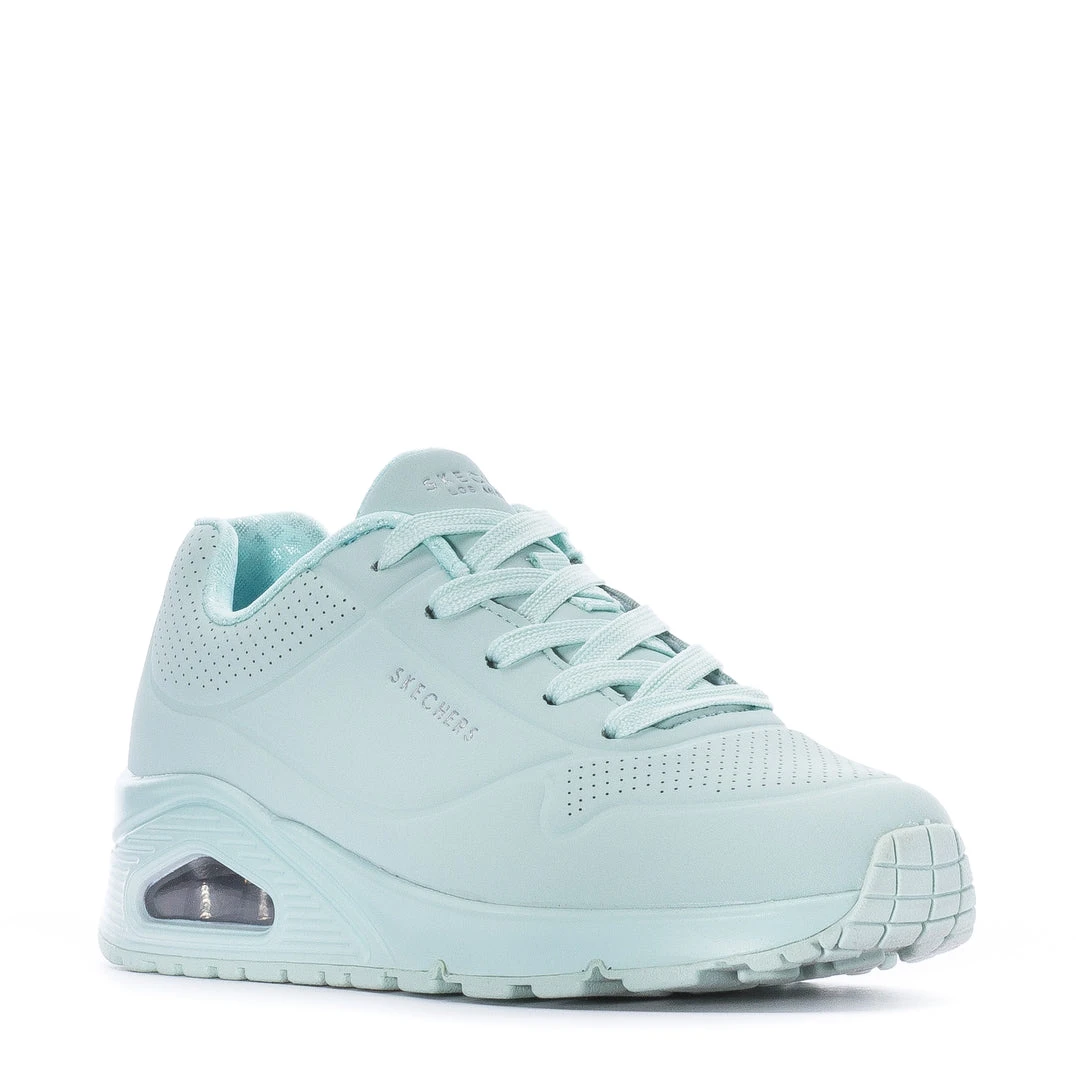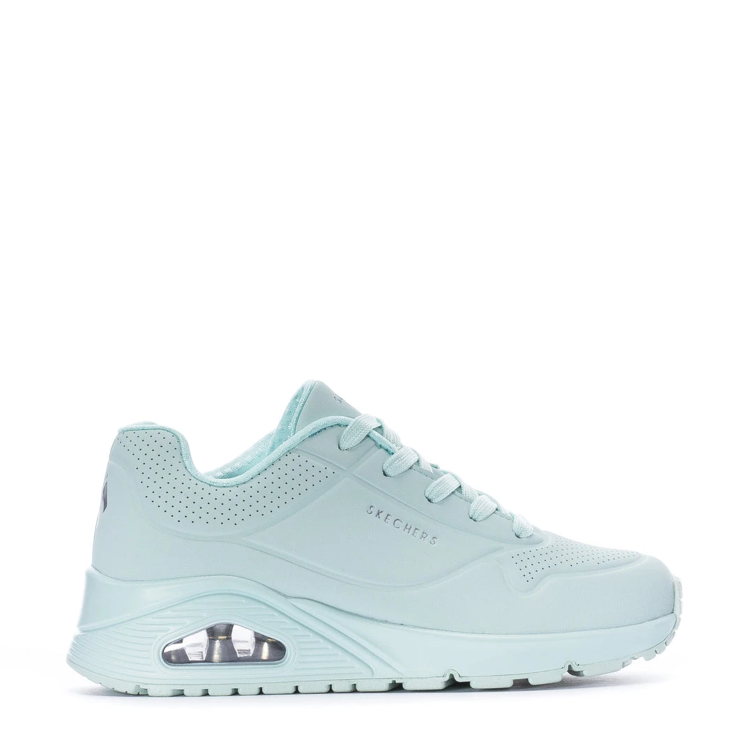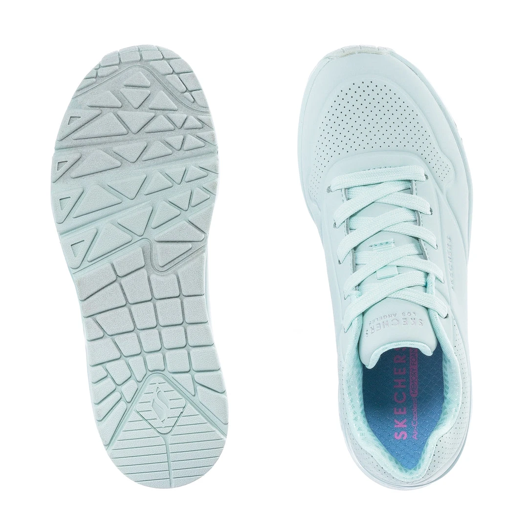 Put some pastel play in your day wearing Skechers Streetâ„¢ Uno – Pastel Shines. This lace-up fashion sneaker features a smooth perforated synthetic Durabuck upper with a Skechers Air-Cooled Memory Foam® insole, and a Skech-Air® visible air-cushioned midsole.