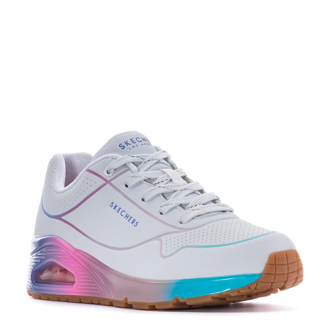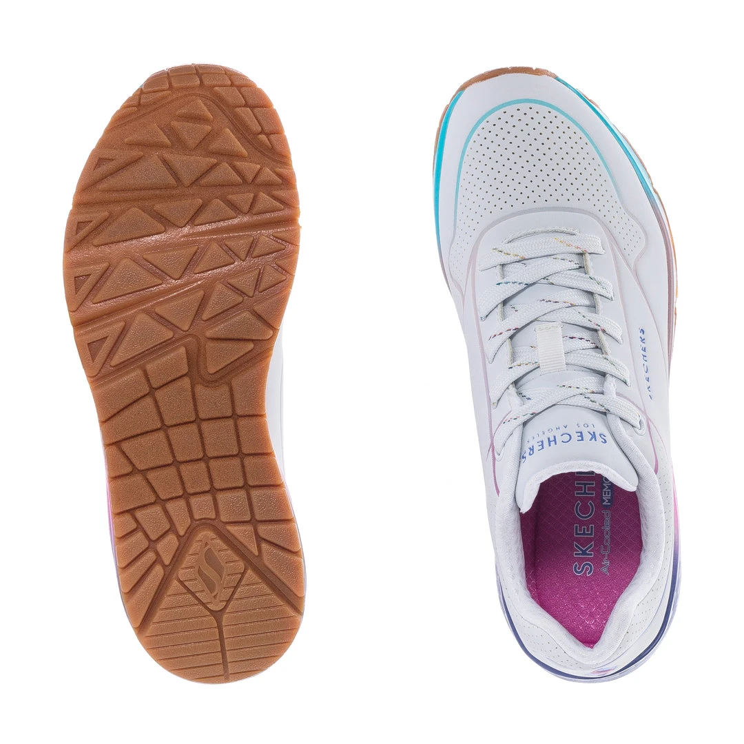 Brighten up your look with fresh and vibrant hues in Skechers Streetâ„¢ Street Uno – Pop of Sunshine. This fashion style features a smooth perforated synthetic upper with Skechers Air-Cooled Memory Foam® insole and a visible Skech-Air® air-cushioned midsole.